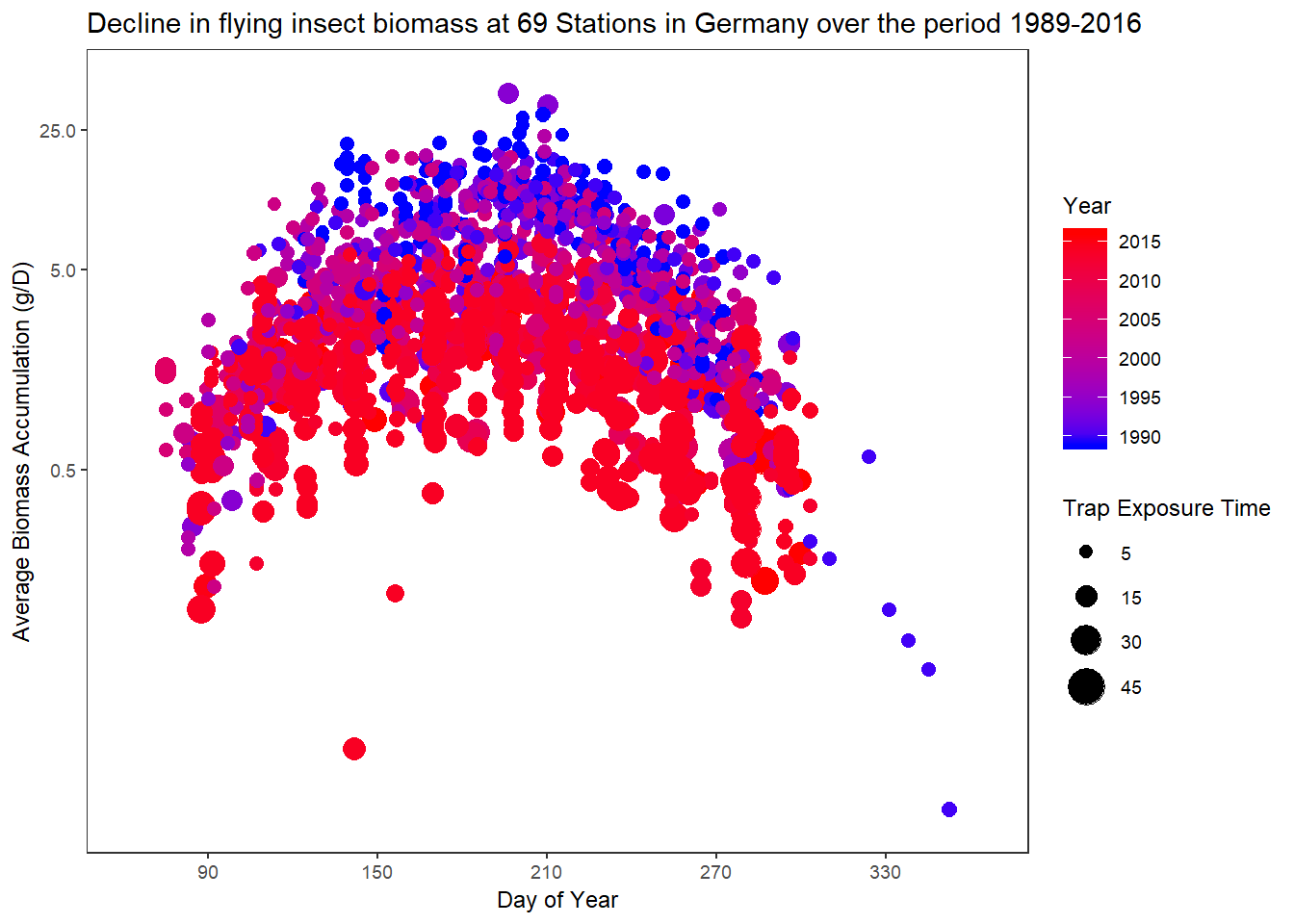 One of the most talked about natural science papers of the last year - More than 75 percent decline over 27 years in total flying insect biomass in protected areas described the precipitous decline of insect biomass across Germany over the last 3 decades.