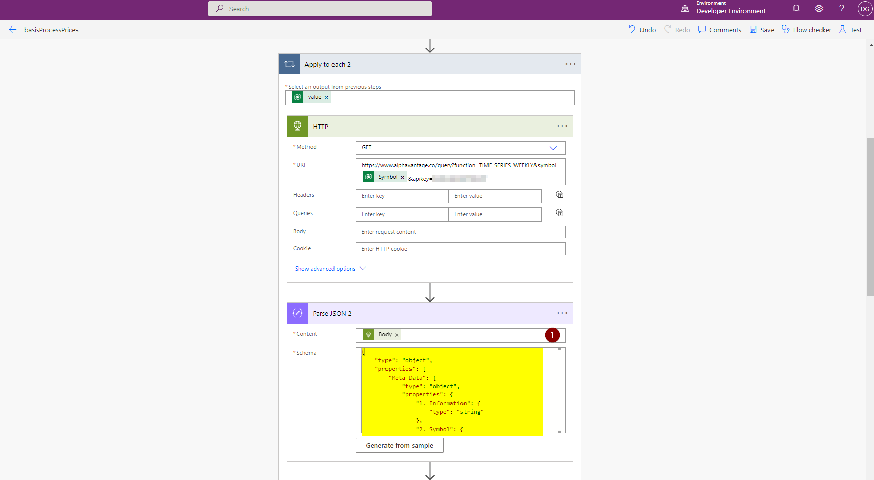 This flow is scheduled to run every 4 weeks across several slots to accommodate for a maximum of 5 API calls/min against the Alpha Vantage endpoint.